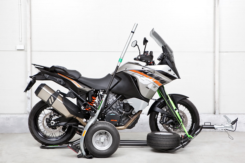 2. Wjedź motocyklem na przyczepę i postaw na nóżce bocznej