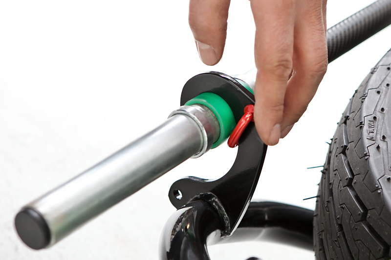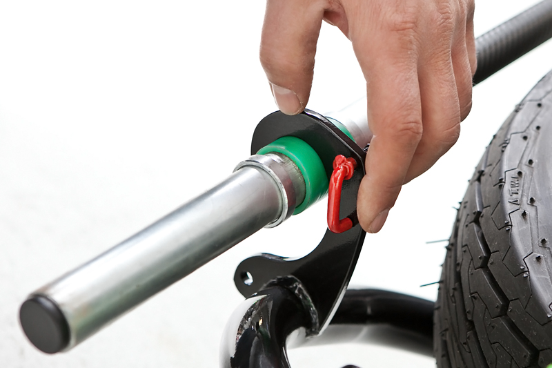 4. Zabezpiecz czerwoną zawleczkę i przypnij przyczepę do samochodu