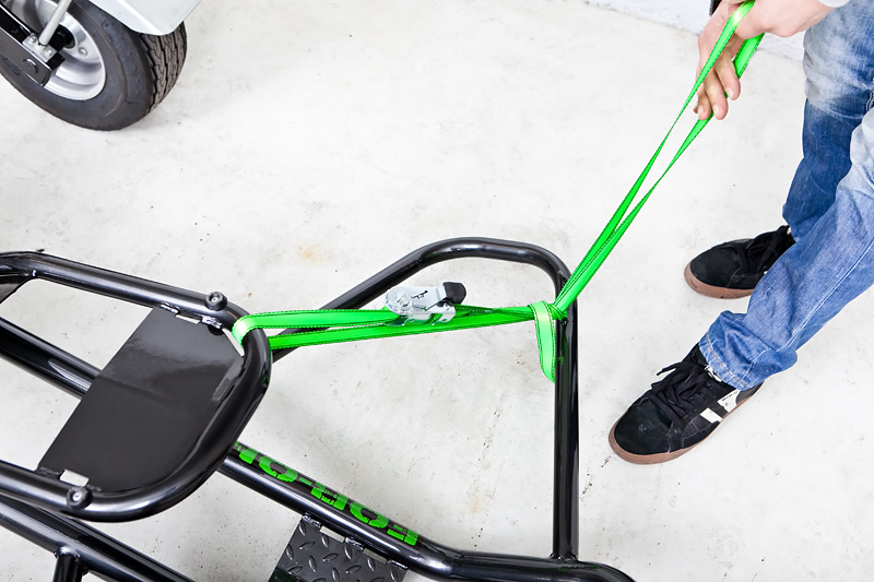5. Na koniec przypnij motocykl pasami z tyłu.